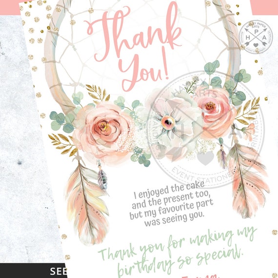 Source : www.theshelfiechronicles.comDreamcatcher Thank You Card Thanks Boho Cards Girl Birthday
